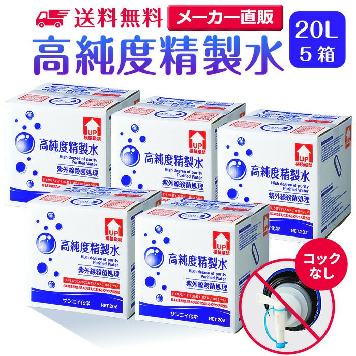 サンエイ化学 高純度精製水 20L×5箱 コックなし の特長と主な用途