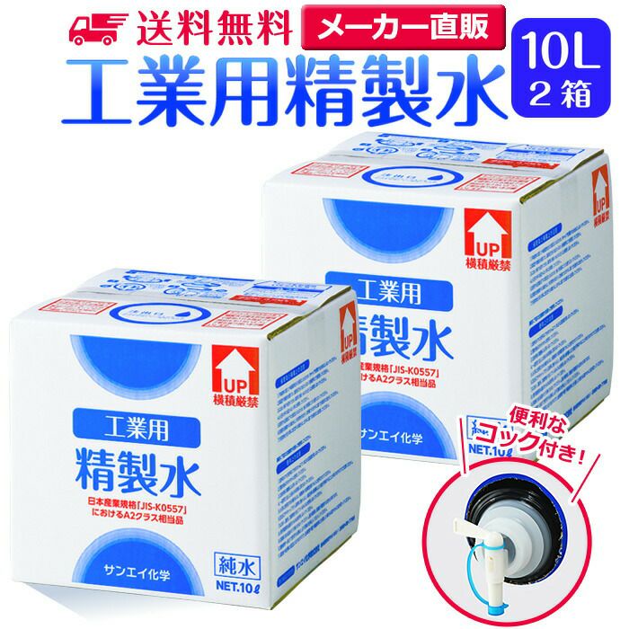 サンエイ化学 工業用精製水 10L×2箱 コック付き の特長と主な用途