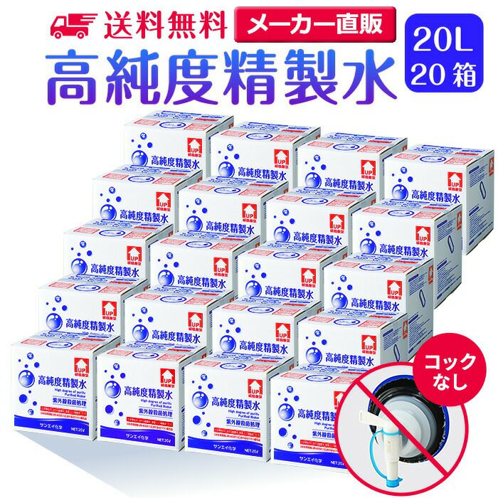 サンエイ化学 高純度精製水 20L×20箱 コックなし の特長と主な用途