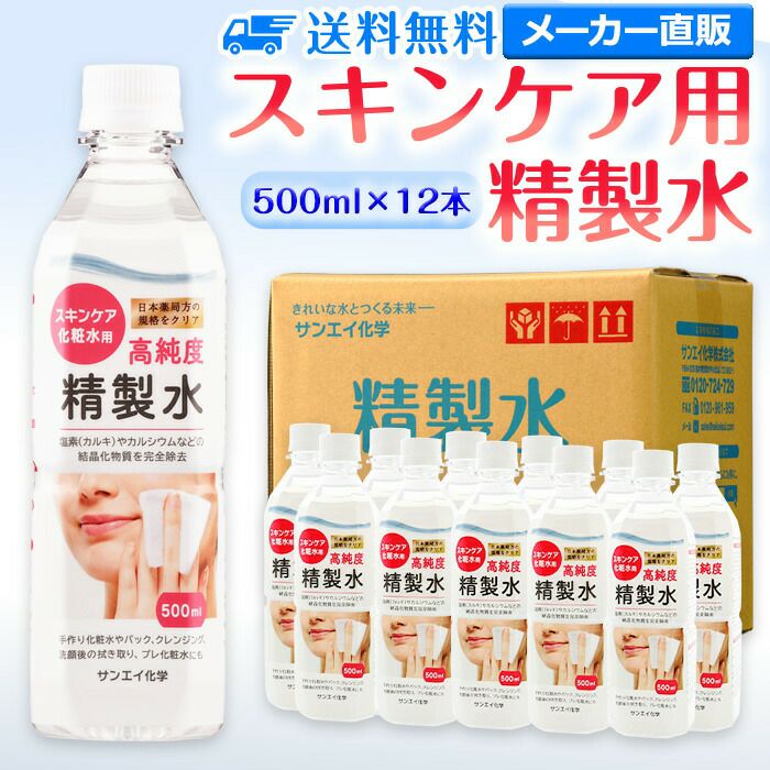 他の画像を見る サンエイ化学のスキンケア用精製水は、日本薬局方および日本産業規格(JIS)におけるA2クラスの規格をクリアした製品です。手作り化粧水やアロマの原料、美顔器やフェイススチーマーなどに サンエイ化学 精製水 スキンケア用 精製水 500mL×36本セット パック メイク プレ化粧水など | 【送料無料】 エステ ネイル ナノケア コットン アロマスプレー グリセリン ペットボトル 高純度精製水 純水 蒸留水 イオン交換水 超純水 せいせいすい ピュアウォーター 日本製 販売価格 ¥ 6,424 税込 会員特別価格 ¥ 6,105 税込 サンエイ化学のスキンケア用精製水は、日本薬局方および日本産業規格(JIS)におけるA2クラスの規格をクリアした製品です。手作り化粧水やアロマの原料、美顔器やフェイススチーマーなどに 詳細を見る お気に入りに登録する