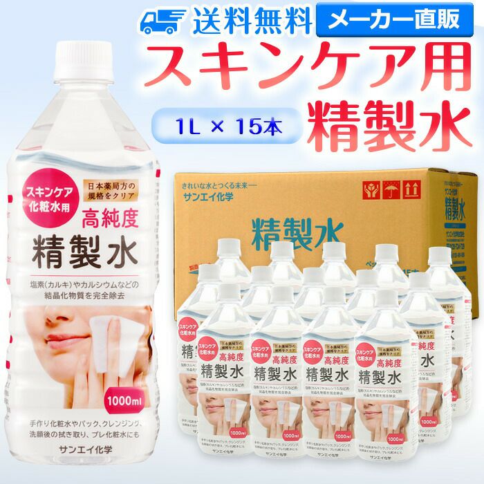 サンエイ化学 スキンケア用精製水 1L×15本 の特長と主な用途