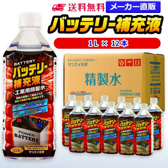 サンエイ化学 バッテリー補充液 1L×12本 の特長と主な用途